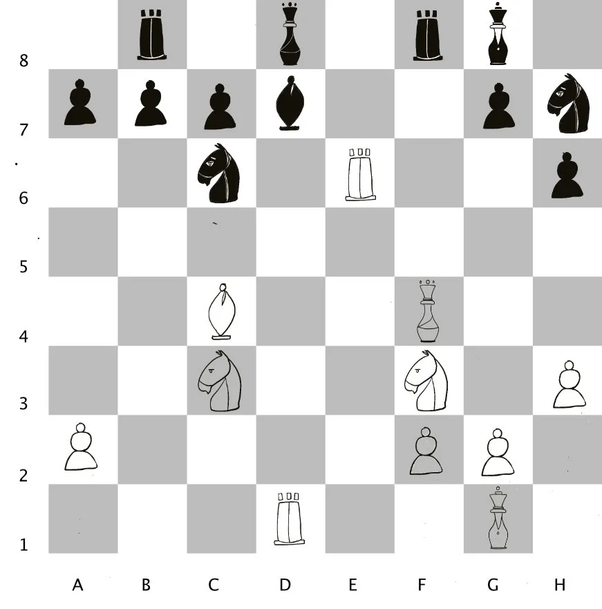 14. Rfe1, Re8 (R on f square moves to e1)